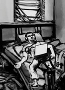 Мозес просыпается под звуки Энди, одержимого своей работой.